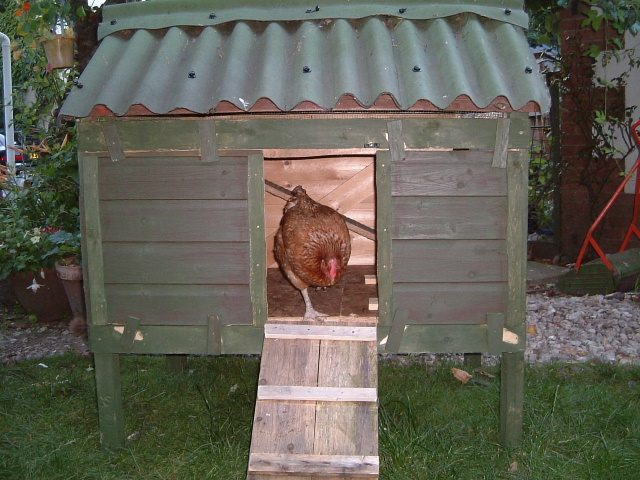 Less than a week later, the bantams moved into their new coop, which has cost me less than £10, and only that because I had to buy hinges and bolts; I just hadn’t left enough time to source them for free. It’s sturdy and draught-free although well-ventilated, and comes apart easily for cleaning, with easy access to the nestboxes on one side. Not too easy though, remembering the fox…