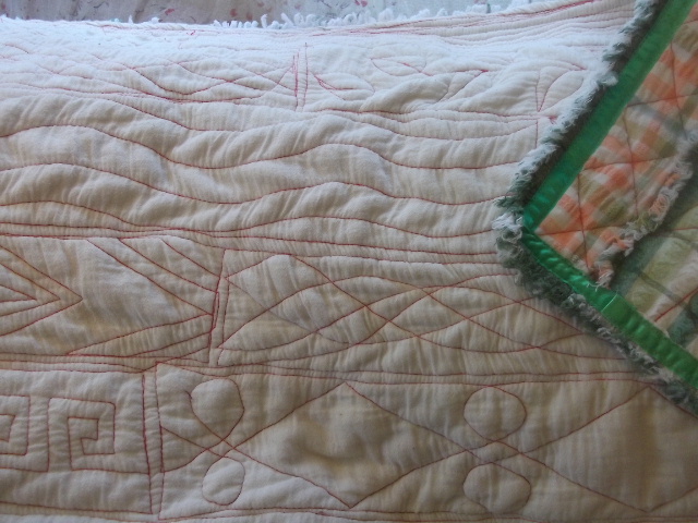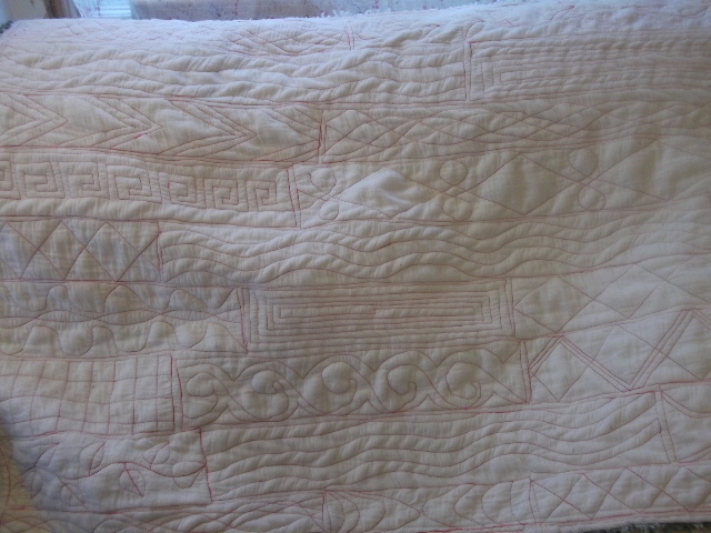 I had fun with the machine quilting, as you can see, and tried out lots of different “patterns”. Some were much easier than others. Bear in mind that my 1909 Jones Medium treadle is extremely easy to use, but only goes forwards and doesn’t automatically adjust stitch lengths or automatically do anything at all except look cheerful!