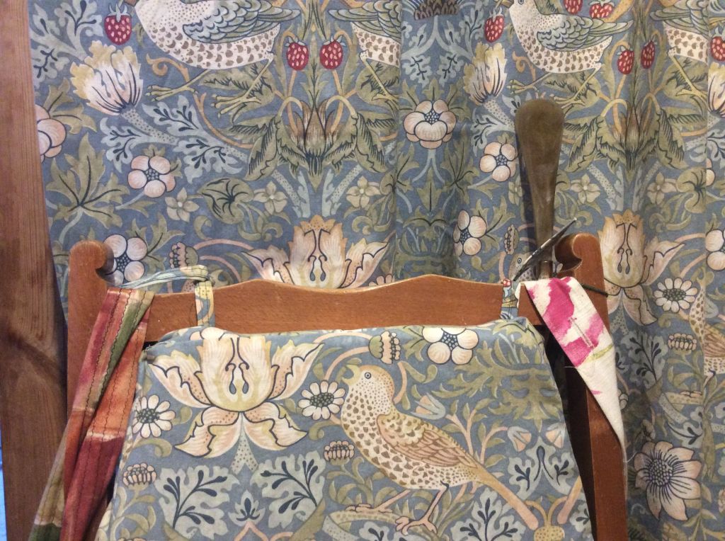 In other news, as son no. 3 always says, I have finally made the new curtains for our kitchen revamp. I’ve only had the fabric, a William Morris misprint, a mere – 3 years? – since we chose it! And there was some left over, enough to do 4 seat-pads for our eclectic mix of vintage kitchen chairs, using some foam that came up on our local Freegle group. Sadly there are actually 8 chairs, so now I have a dilemma – do I buy some more, or let the project rest now I’ve used up what I had, & get on with the rest of the kitchen?