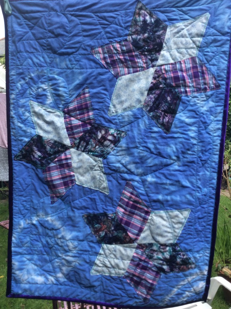 I even got to use some of my tie-dyed fabric on the back. All the fabric is reclaimed, rightly or wrongly.