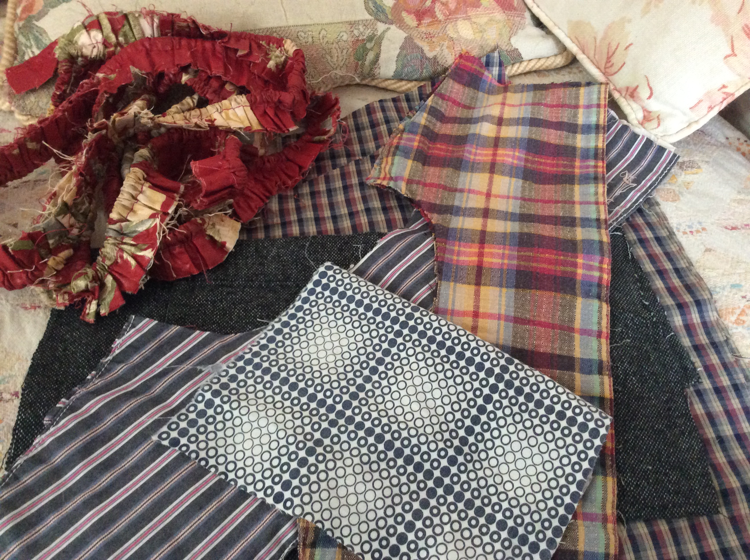 It wasn’t difficult to make; there’s no tailoring involved. I kind of followed the “Hanten Jacket” pattern from Susan Briscoe’s inspiring The Book Of Boro, but the cotton bump was lightly stitched into the curtain ends & pelmets, so I left it that way and just stitched the pieced-shirt outer onto it. The thread came from my existing stash. Flattering it isn’t, and it’s a bit big for me, but warm it most certainly is & I’ll be very happy to wear it around the place, at the cost of something around £3; 50p each for 5 shirts and another 50p for the curtain bits, and there are still plenty of oddments to use up. Now I know it’s not hard, I’m planning at least one more, from an old linen curtain, a cotton duvet cover for the lining, and a lightweight blanket as padding, which I’d picked up intending to sell on, before I noticed the stained fringe. I could just have cut that off & sold it anyway, but it’ll make great padding that I’d otherwise have to pay for!