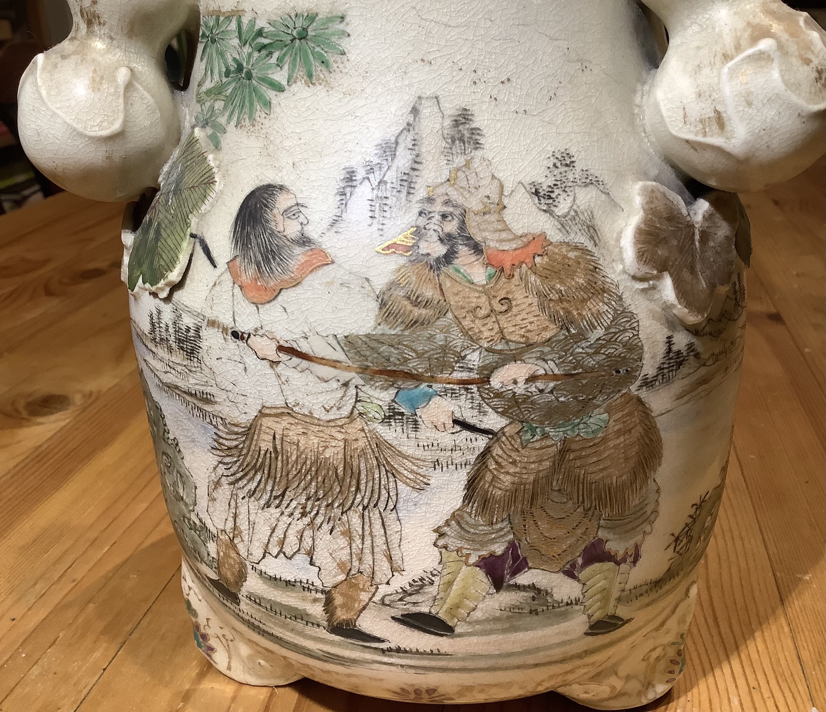 I also love old china and your vase intrigued me. I searched for your image using Google Lens (click on the camera icon at the r-h side of the search bar). Did not find your scene but there were some delicious images of 19th century Meiji period Satsuma ware. If this is a rabbit-hole you have not already fallen down, then good luck and apologies for the time-sucking wormhole!