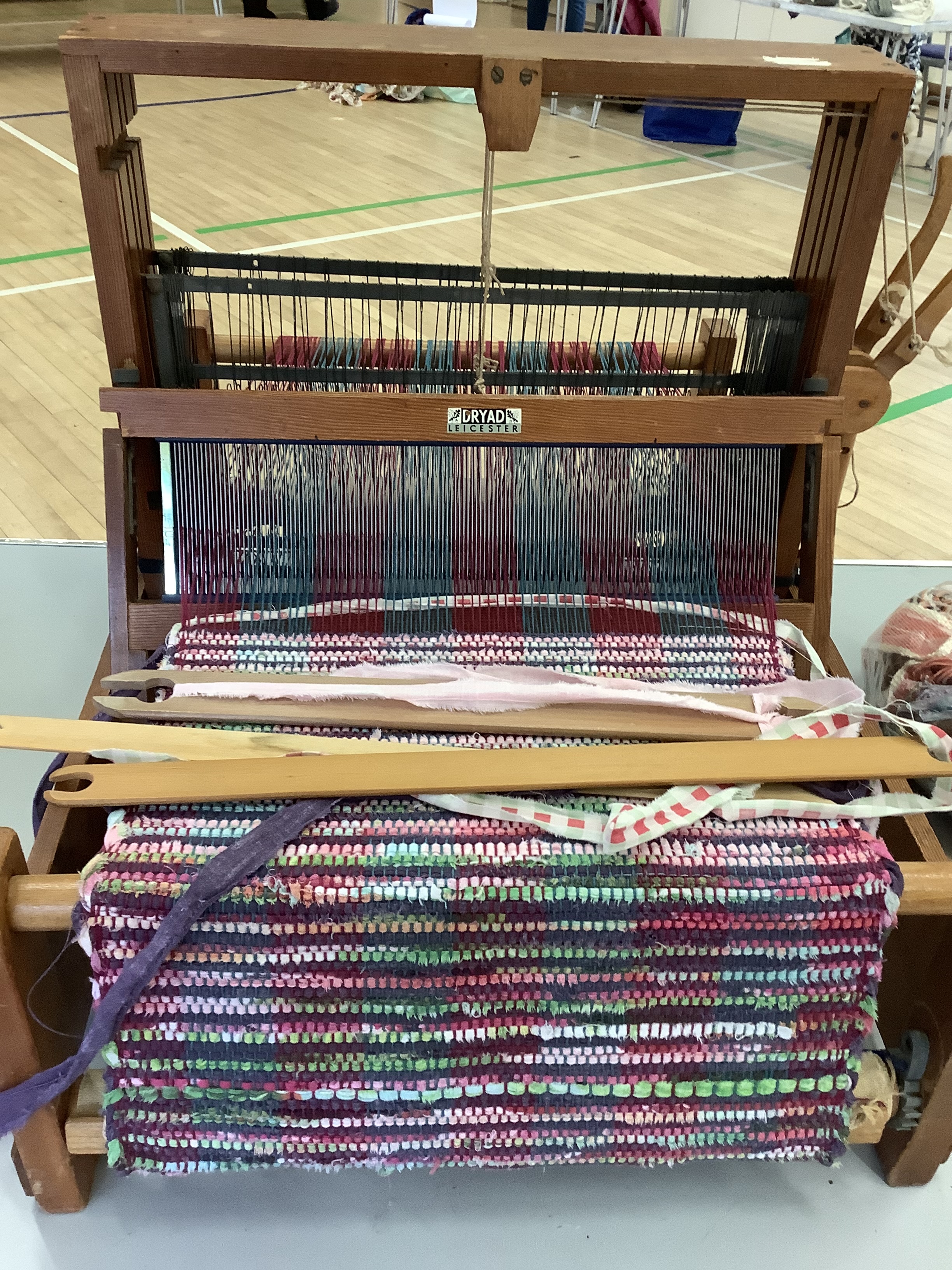 Woven mostly during a Dorset Guild of Weavers, Spinners & Dyers workshop with the lovely Riita Sinkonnen-Davies, my “Weaving New from Old” project was woven on a little old Dryad 4-shaft loom, still with metal heddles and tied together with various rather random bits of string.